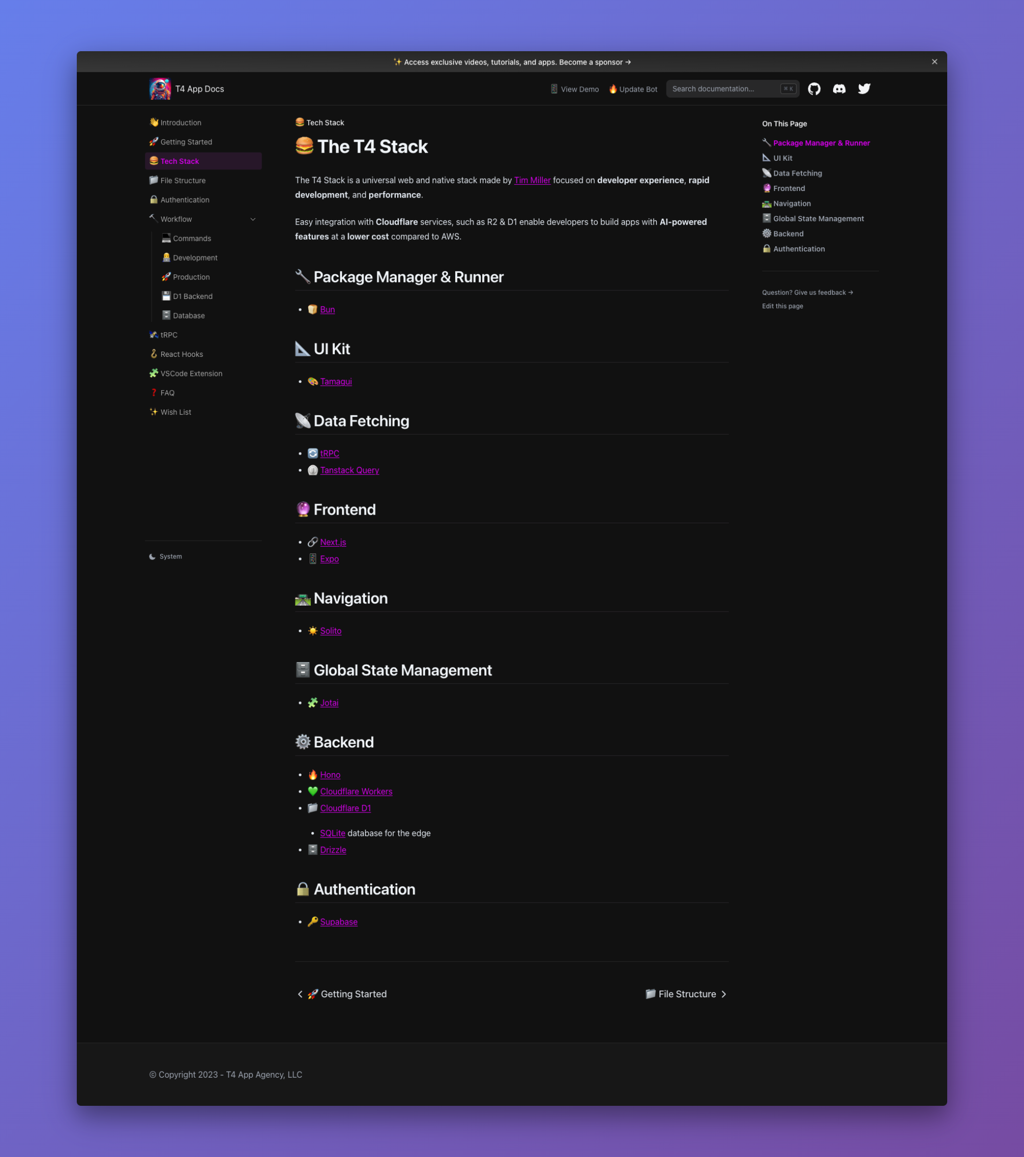 如果你的项目还需要移动端 App,我本人对于原生应用开发的话不是太了解(除了很早之前写过 android 后再也没接触过原生应用开发),这里推荐 T4 Stack,移动端主要用的是 Expo,其它和本文大部分的技术栈重合,可以减少学习和开发的成本。